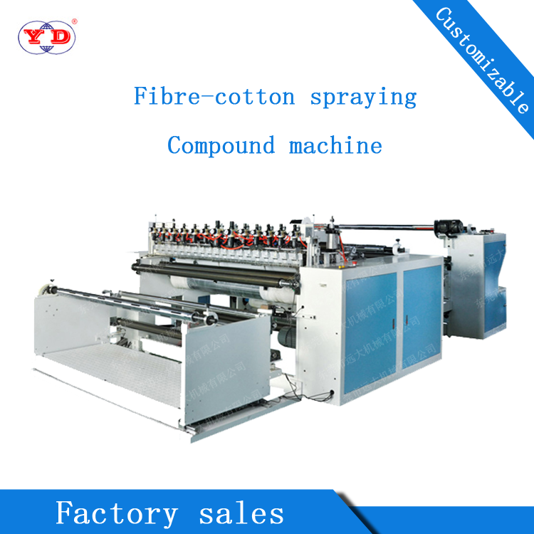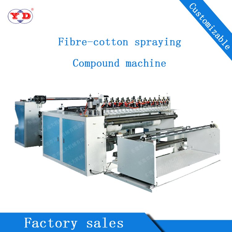 Fiber-cotton spraying compound machine can complete the compounding of non-woven fabric, fabric, leather super-fiber, TPU film and sponge. Main uses: air conditioning filters, health masks, baby diapers, shoes, underwear, etc.
